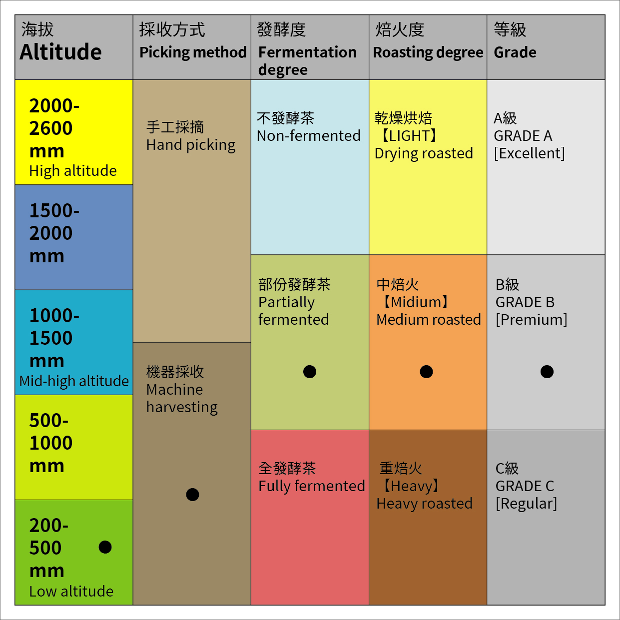 發酵程度:部分發酵茶 (發酵度70~80%,未達全發酵)
